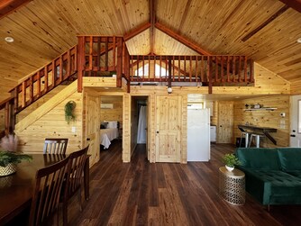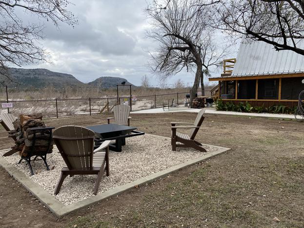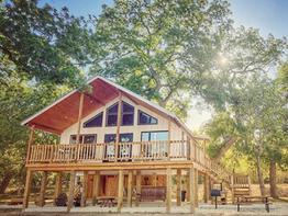 This brand-new-built TREETOP OASIS with its tropical feel, has views of the Nueces River and hills. The sunrises are amazing! The Oasis offers an abundance of outdoor living space. It has a large covered deck with chairs and a dining area to enjoy the view and the breeze, while the underneath area which boost a full bath, bar, kitchenette, swing, and an air conditioned play house for the kids, all for your enjoyment. Off to the side, you will find a BBQ pit and a fire pit area with chairs for cooking s'mores and to cozy up to on those cool Texas nights. The Oasis has a master bedroom with a queen bed, a loft with two queen beds, a full bath, kitchen, and living area. It has lots of glass so you can enjoy the view inside as well as out! This cabin has everything you need to enjoy your stay. The river is great for swimming, fishing, snorkeling, or kayaking. Bird watching, biking, hiking, and hunting are very popular in this area. Watching wildlife in the mornings or star gazing at night this place won't disappoint.